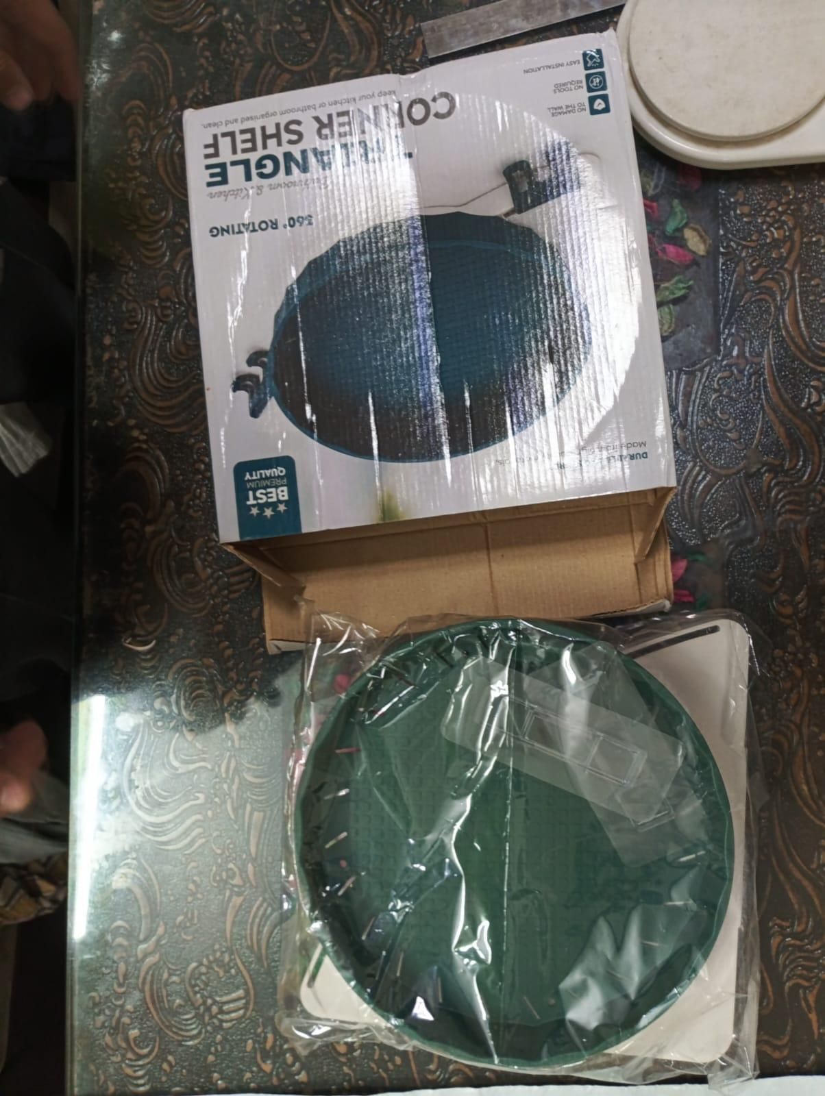Product Name: 360 Triangular Rotating Corner ShelfPackage Contains: It has 1 pcs of Rotating Corner Shelf�Material : PlasticProduct Dimension (LXBXH): 7 x 5 x 0.1cmCombo Pack: Pack of 1Weight: 500 gmsAdditional Information:�Easy to wall mount using peel and stick self-adhesive wall stickers. No drill & no nails required.You can use it to organise spice, bottles, sink area in kitchen, bathroom, living room, dressing room etc.Wall Shelves & Corner Triangle can be easily wall mounted on any smooth and clean surface. Suitable for glass, tiles, stainless steel surfaces.DO NOT use on Wall / Wooden Surface.